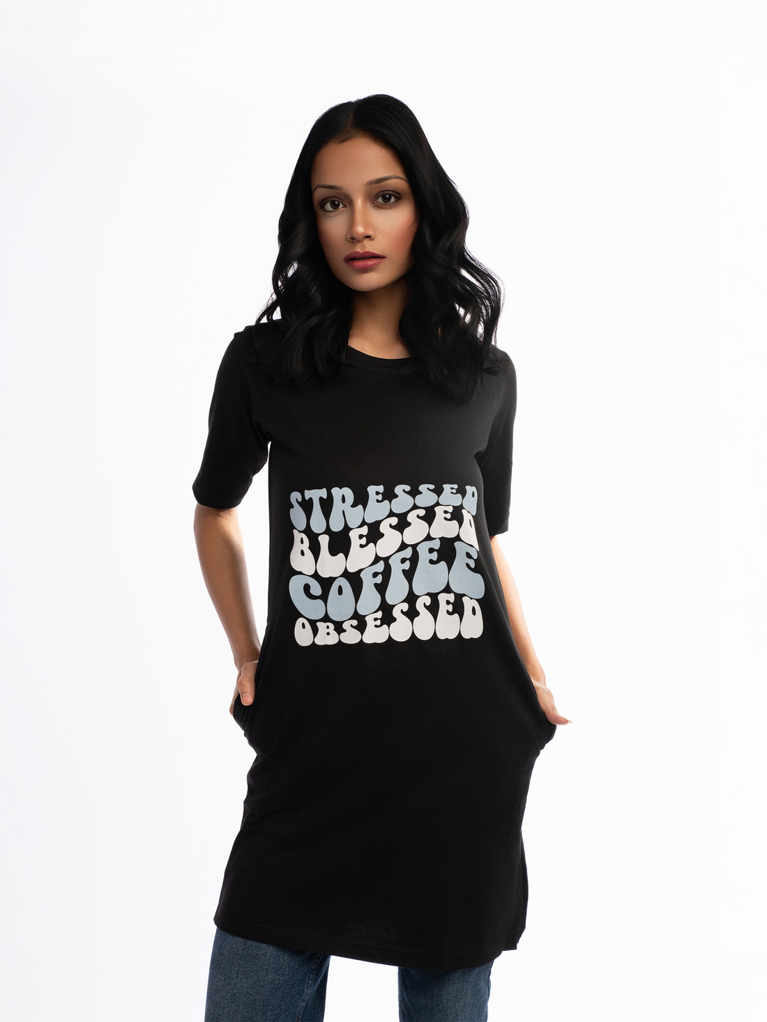 Ziddi Prints Coffee Lovers Night T-Shirt Dress