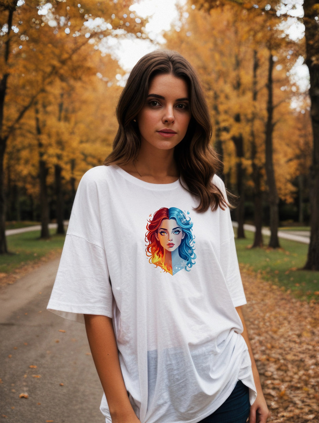 Unleash your inner fire with Ziddi Printsβ Cool Woman on Fire OverSized T-Shirt. Designed to...