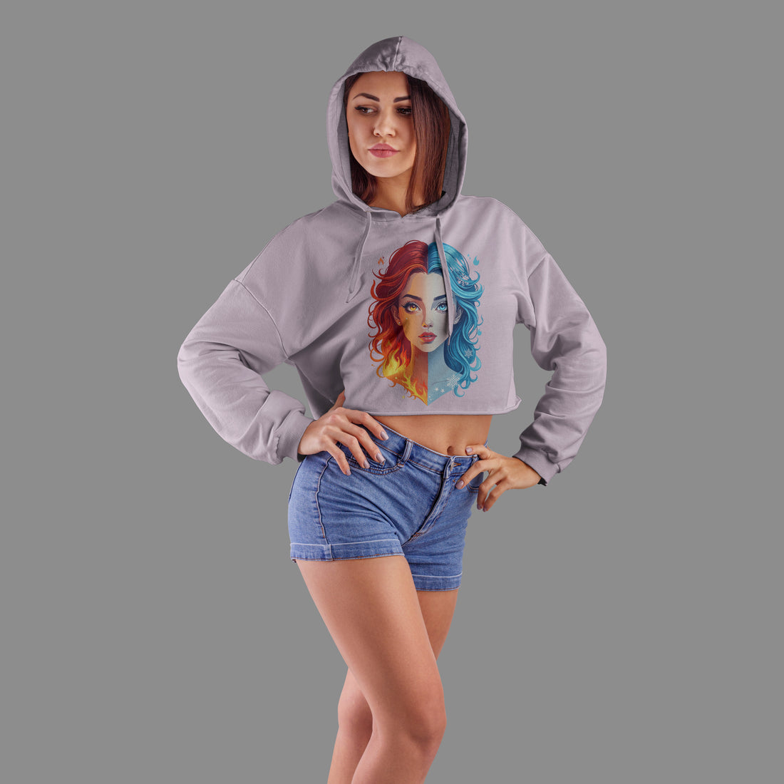 Ziddi Prints Cool Woman on Fire Crop Hoodie β Fuel Your Passion with Fierce Style...