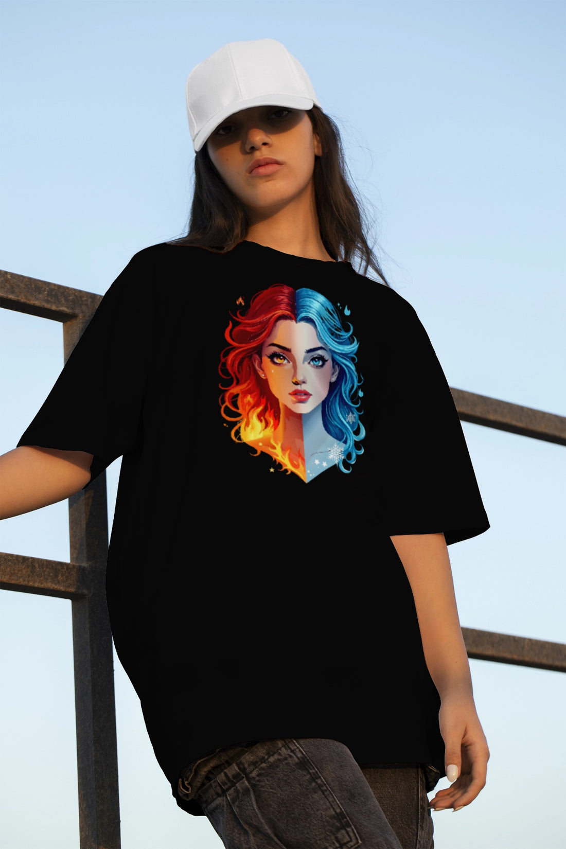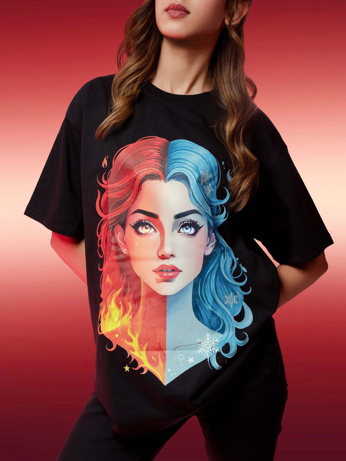 Ziddi Prints Cool Woman on Fire OverSized T-Shirt β Ignite Your Passion with Style