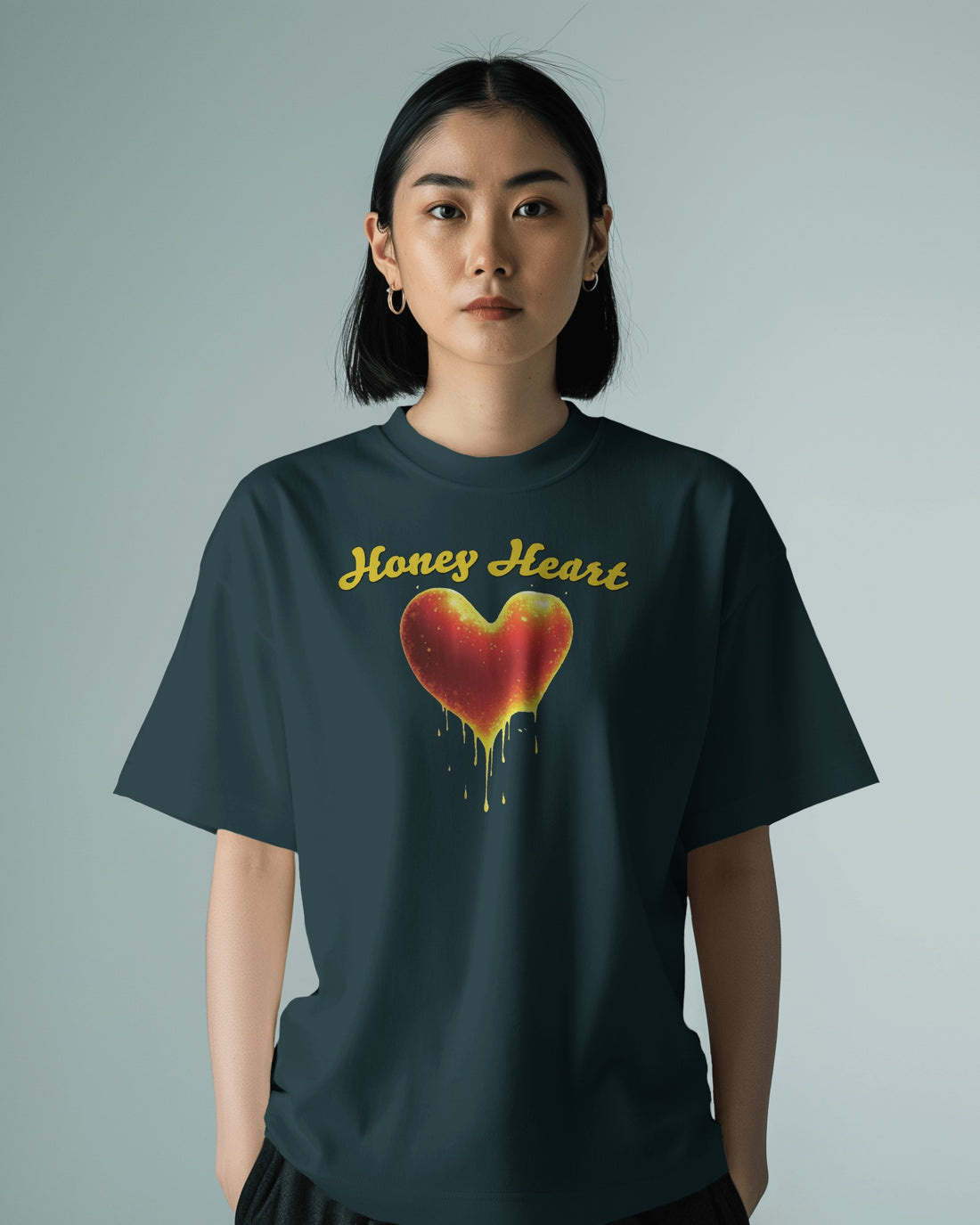Ziddi Prints Honey Heart OverSized T-Shirt – Sweeten Your Style with Love and Comfort