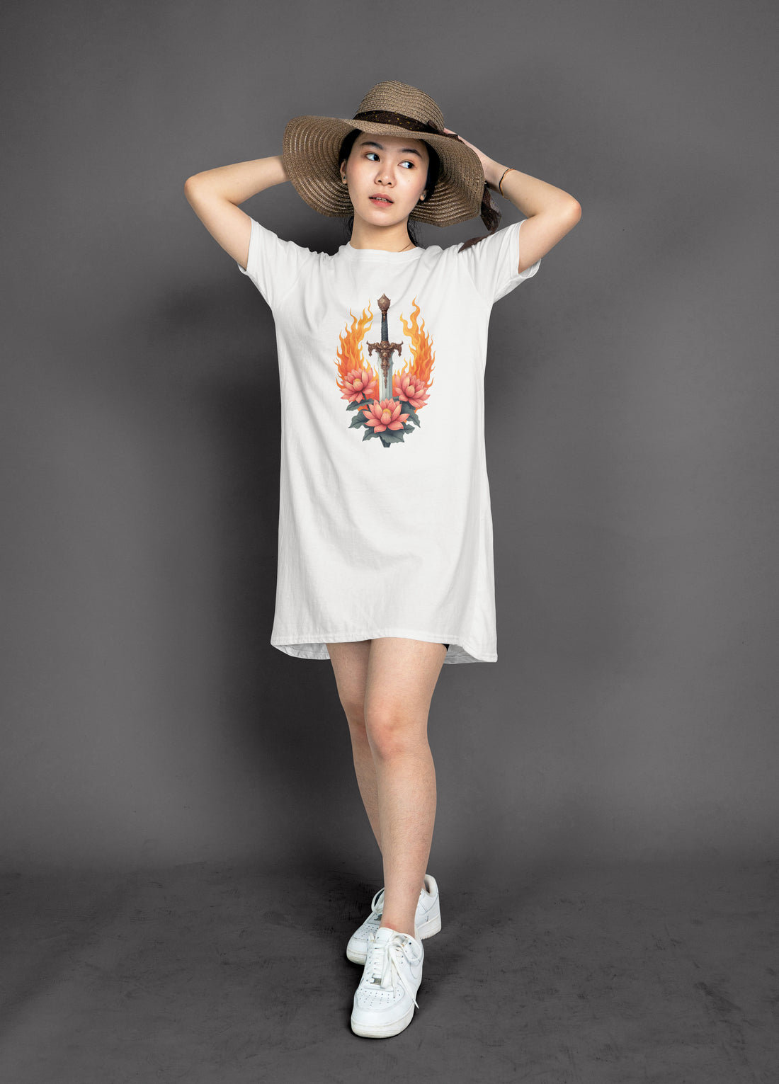 Ziddi Prints Lotus Flowers with Sword T-SHIRT DRESS