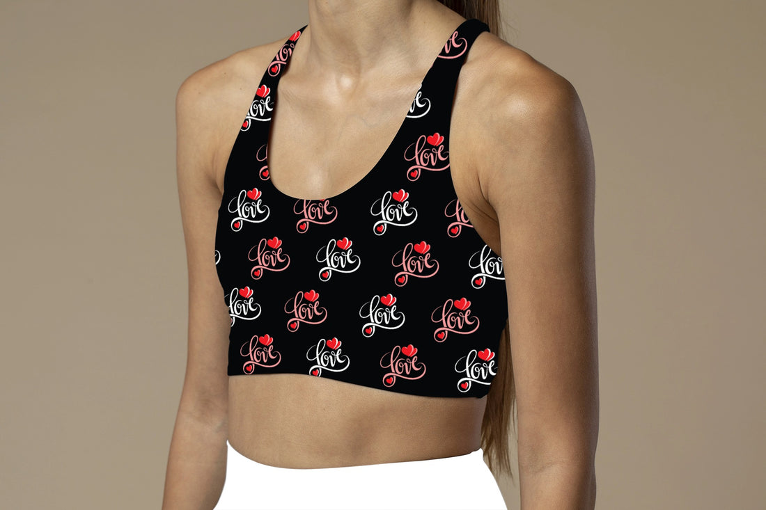 Ziddi Prints Love All-Over Print Sports Bra – Passionate Power in Motion Elevate your...