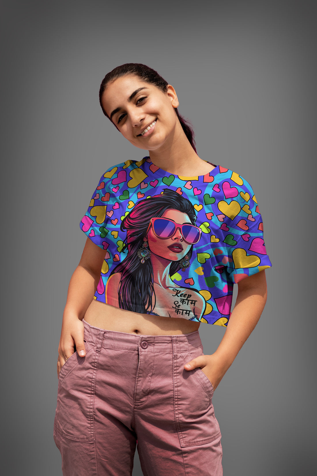 Ziddi Prints β All Over Print Crop Top: Keep Kaam Se Kaam
