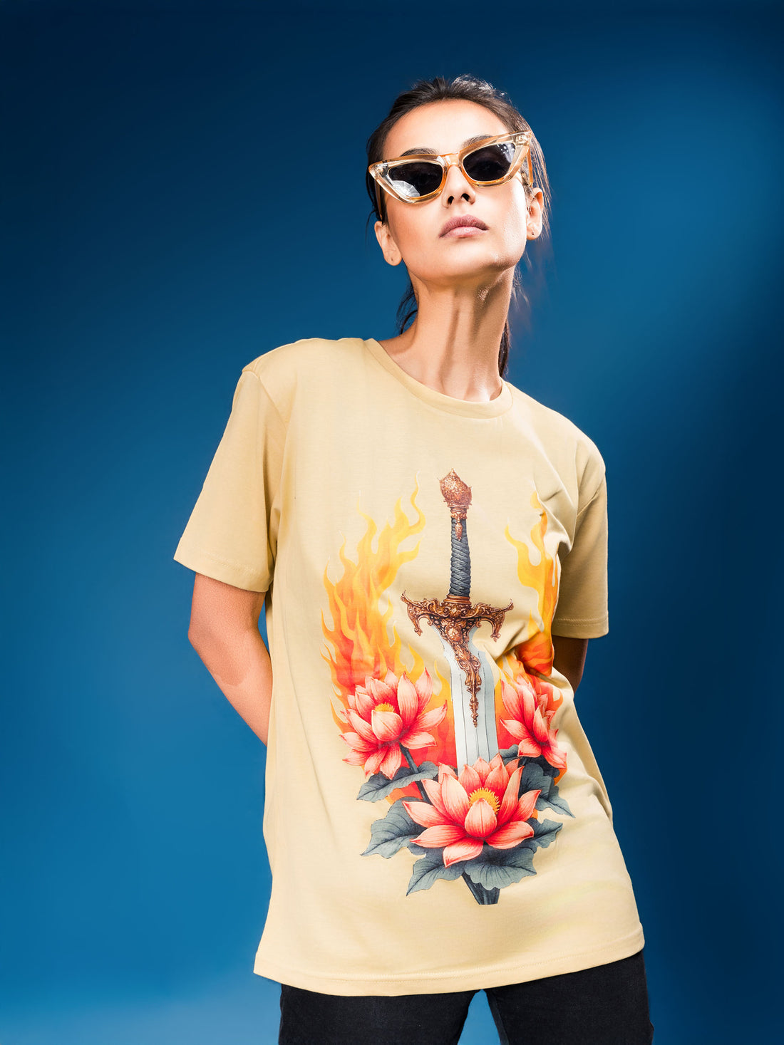 The Ziddi Prints-Lotus Flowers with Sword-Supima Cotton T-SHIRTS