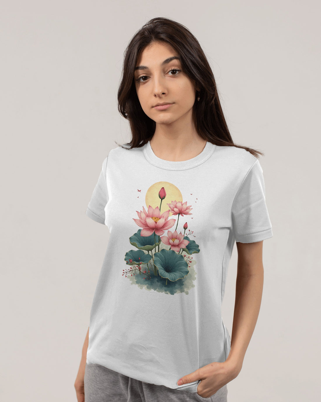 The Ziddi Prints-Lotus Flowers in Pond-Supima Cotton T-Shirt
